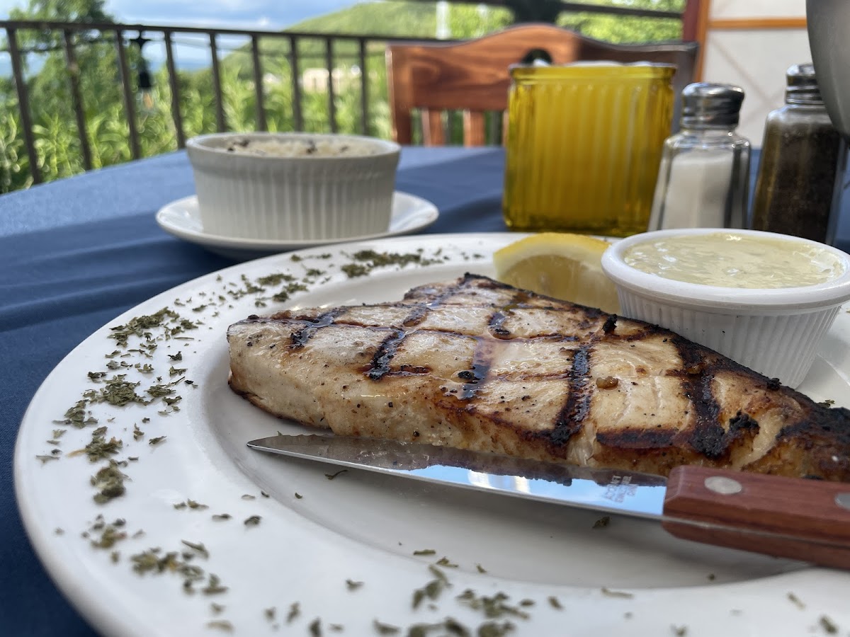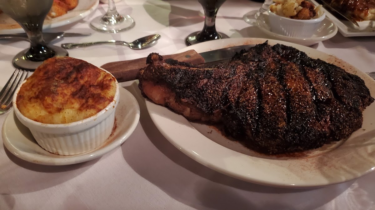 The food was fabulous. I like the menu how they offer their entrees. Beef Seafood, chicken, pasta and then underneath each category offer at least nine different types of dishes. Their sides or different from any other restaurants. I had salmon with a shrimp stuffing ,zucchini shredded with garlic butter , a blue cheese salad with extremely crispy iceberg lettuce chunks, and a sweet potato mash. The salmon was cooked to perfection quite a large serving. There was a large selection of appetizers and also desserts. I have to say the staff was extremely friendly and professional and the prices were good. We also enjoyed the ice rooms that they had built outside. While we were there the artist we're working on them and carving out the blocks we took pictures.